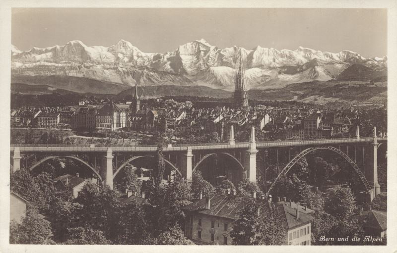 Zustandsbeschreibung der Ansichtskarte "Stadt Bern und die Alpen"