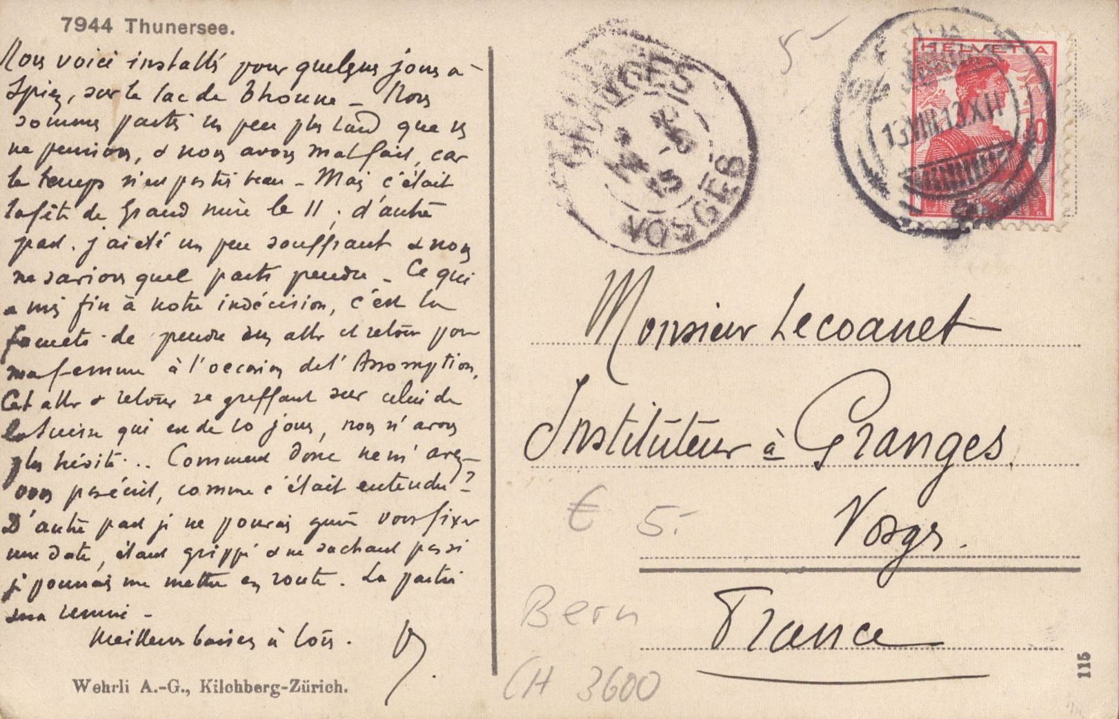 Zustandsbeschreibung der Ansichtskarte "Thunersee"