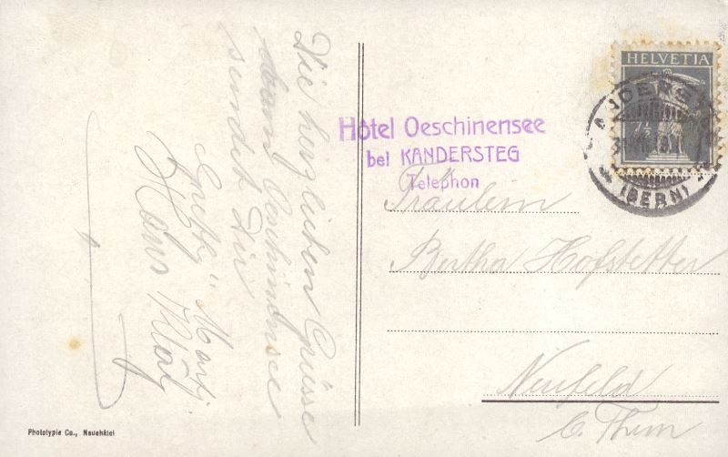 Zustandsbeschreibung der Ansichtskarte "Oeschinensee"