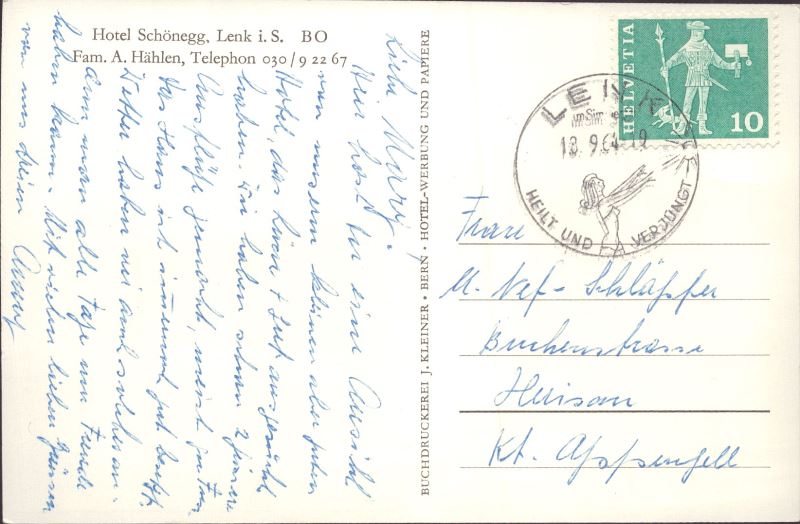 Zustandsbeschreibung der Ansichtskarte "Hotel Schönegg, Lenk"