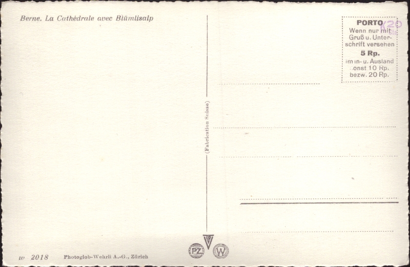 Zustandsbeschreibung der Ansichtskarte "Münster mit Blümlisalp (Bern)"