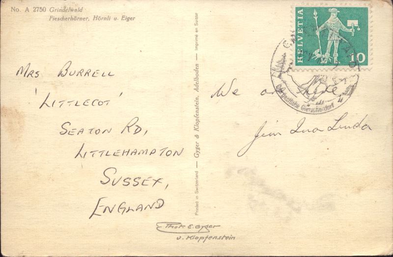 Zustandsbeschreibung der Ansichtskarte "Grindelwald, Fiescherhörner, Hörnli und Eiger"