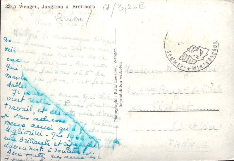 Zustandsbeschreibung der Ansichtskarte "Wengen, Jungfrau und Breithorn"