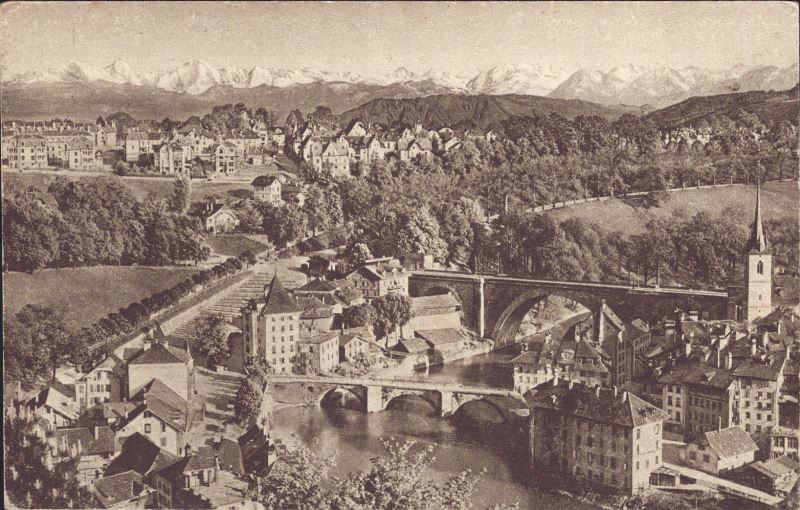 Zustandsbeschreibung der Ansichtskarte "Bern, Nydeckbrücke und Alpen"