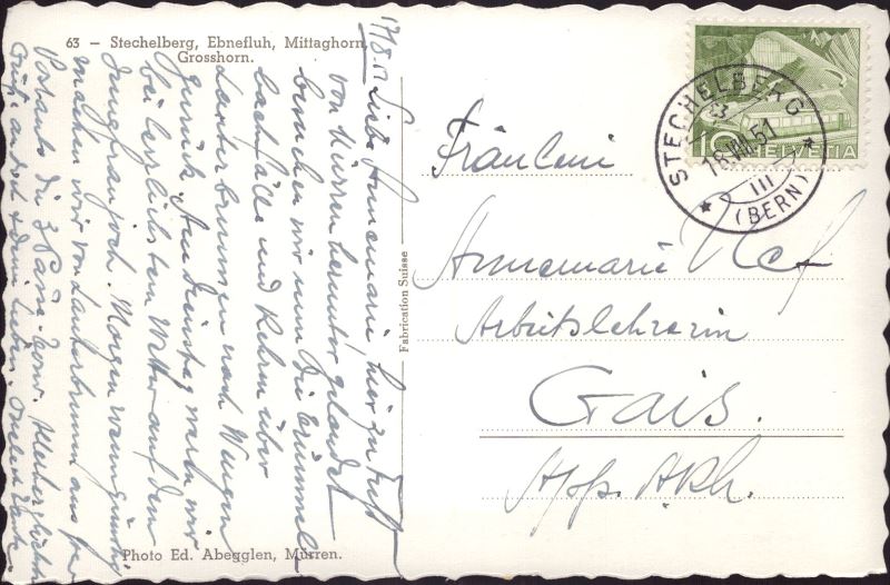 Zustandsbeschreibung der Ansichtskarte "Stechelberg"