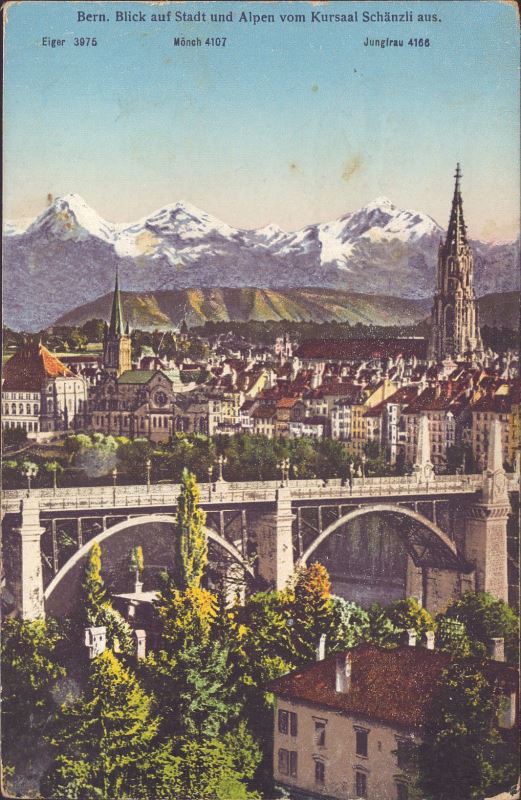 Zustandsbeschreibung der Ansichtskarte "Bern, blick auf Stadt und Alpen vom kursaal Schänzli aus"