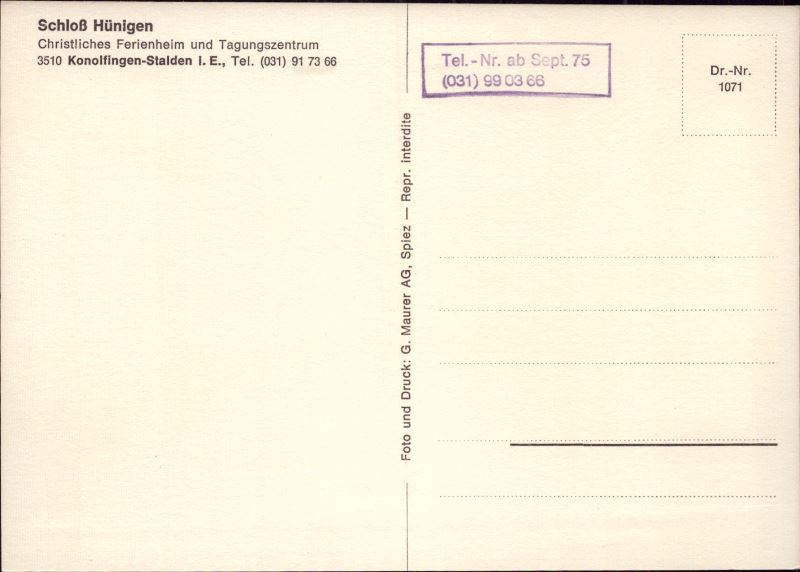 Zustandsbeschreibung der Ansichtskarte "Schloss Hünigen, Konolfingen-Stalden i.E."