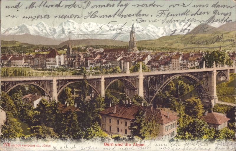 Zustandsbeschreibung der Ansichtskarte "Bern und die Alpen"
