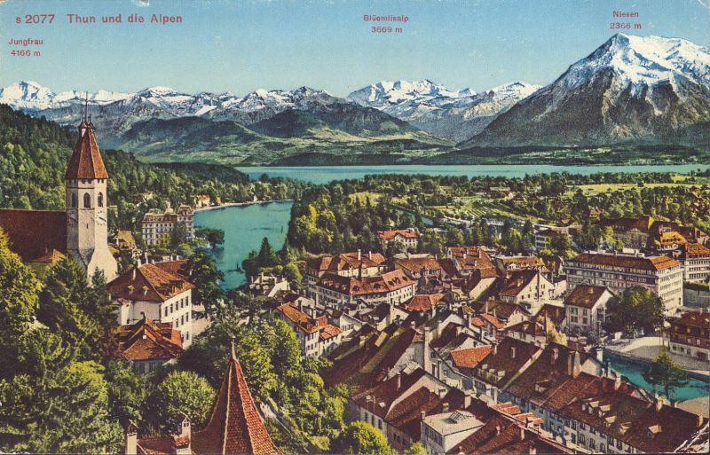 Zustandsbeschreibung der Ansichtskarte "Thun und die Alpen"