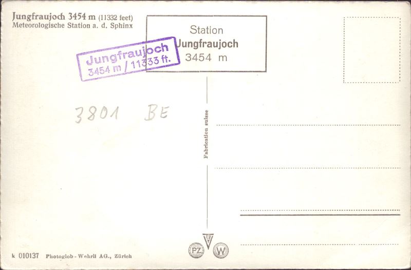 Zustandsbeschreibung der Ansichtskarte "Jungfraujoch (3454 m)"