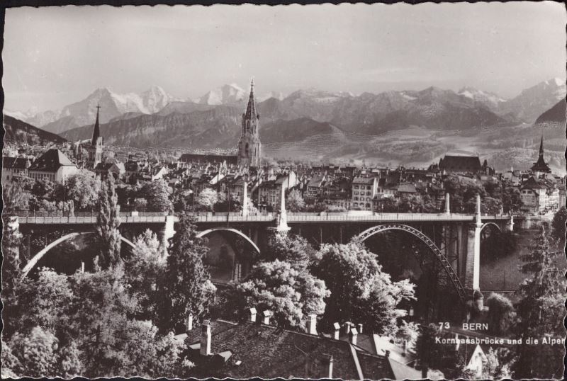 Zustandsbeschreibung der Ansichtskarte "Kornhausbrücke (Bern) und die Alpen"