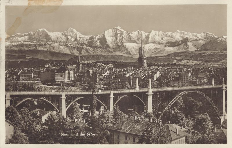 Zustandsbeschreibung der Ansichtskarte "Bern und die Alpen"