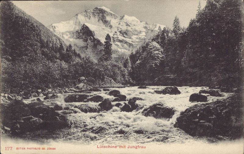 Zustandsbeschreibung der Ansichtskarte "Lütschine mit Jungfrau"