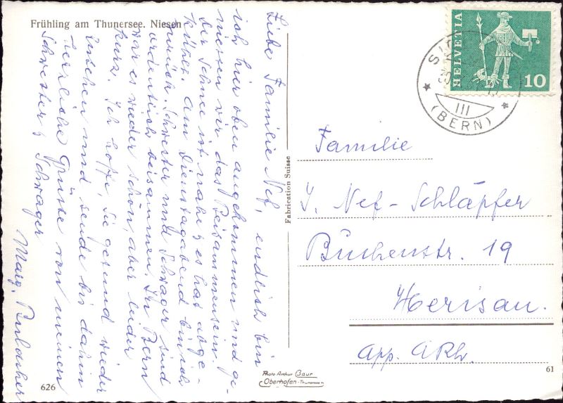 Zustandsbeschreibung der Ansichtskarte "Frühling am Thunersee, Niesen"