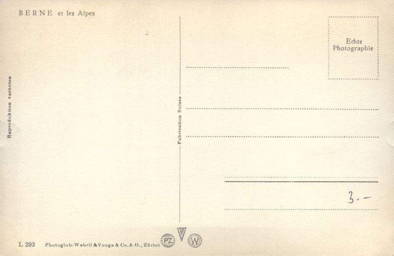 Zustandsbeschreibung der Ansichtskarte "Bern und die Alpen"