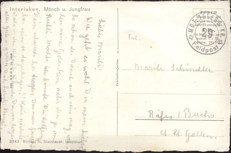 Zustandsbeschreibung der Ansichtskarte "Interlaken - Mönch und Junfrau"