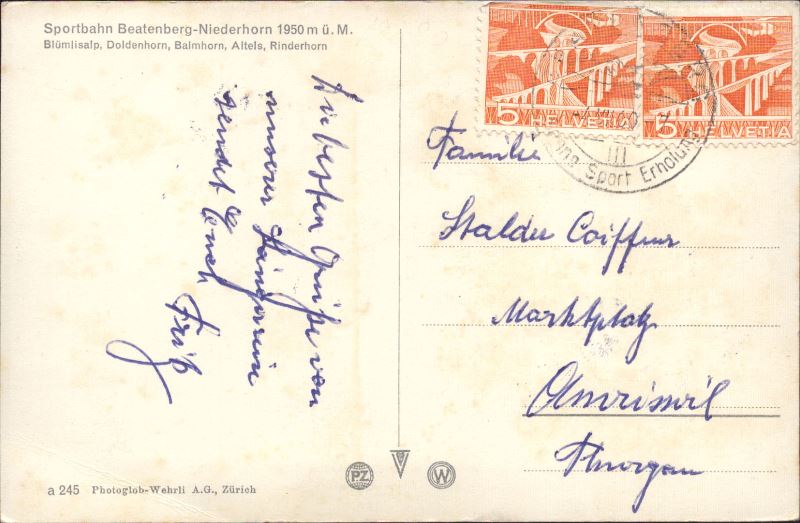 Zustandsbeschreibung der Ansichtskarte "Sportbahn Beatenberg - Niederhorn"