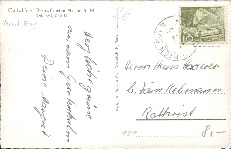 Zustandsbeschreibung der Ansichtskarte "Golf - Hotel Bern - Gurten (861m)"