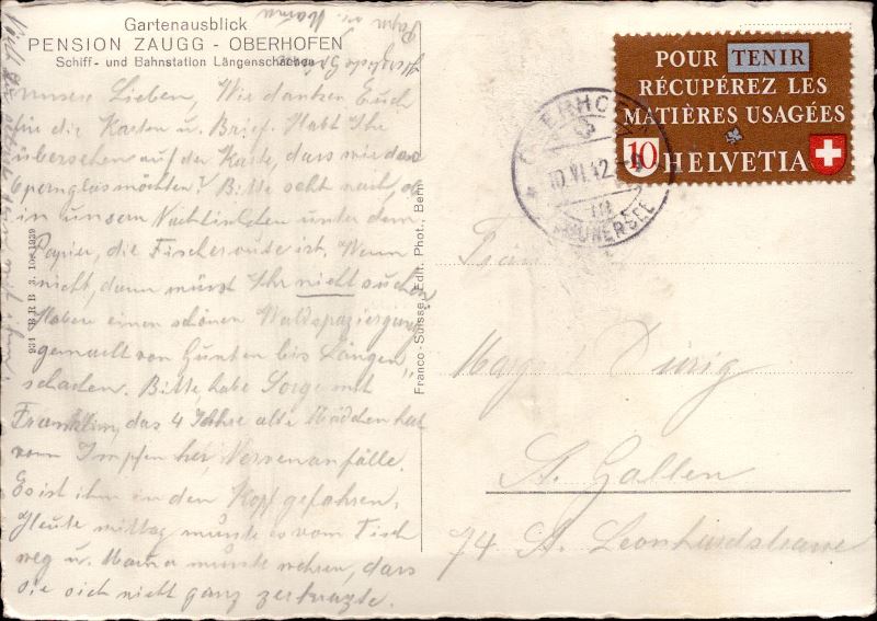 Zustandsbeschreibung der Ansichtskarte "Pension Zaugg Oberhofen"