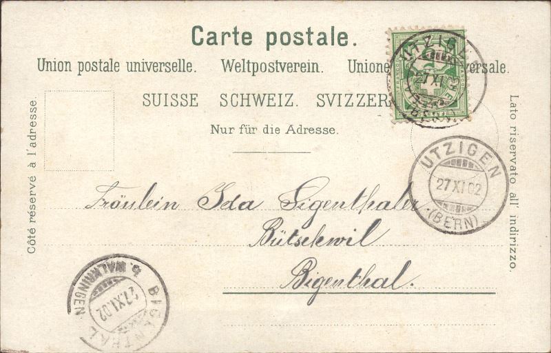 Stempelflecken auf Vorderseite, Befleckt, gelaufen 1902