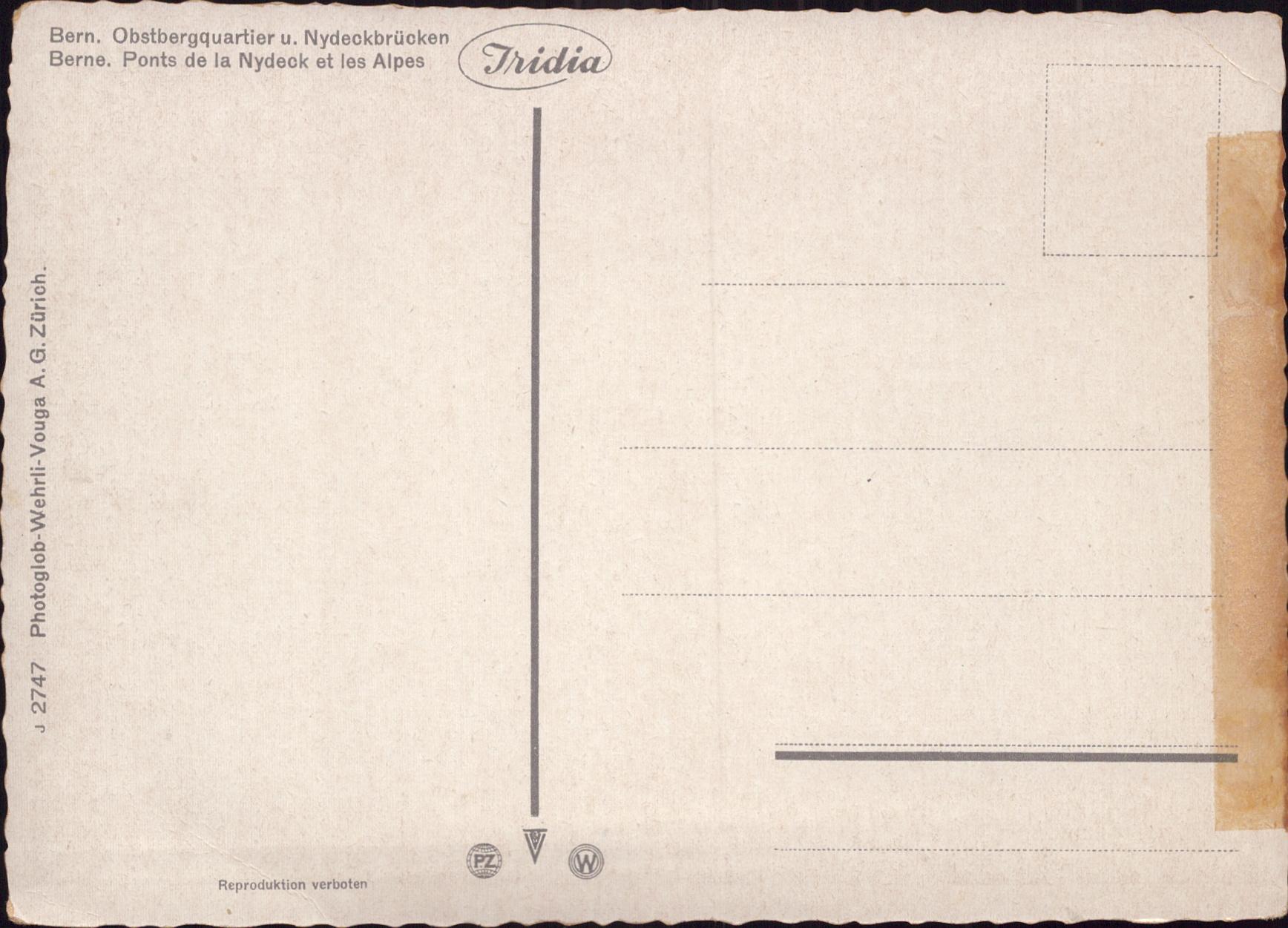 Zustandsbeschreibung der Ansichtskarte "Obstbergquartier und Nydeckbrücken, Bern"