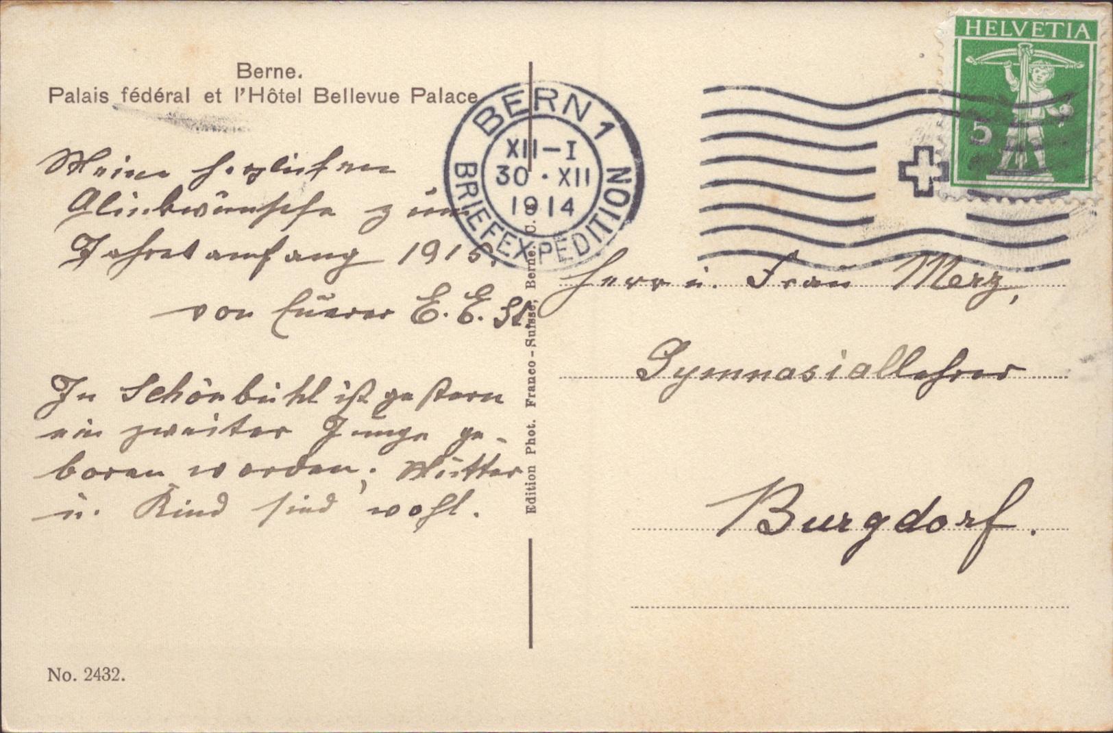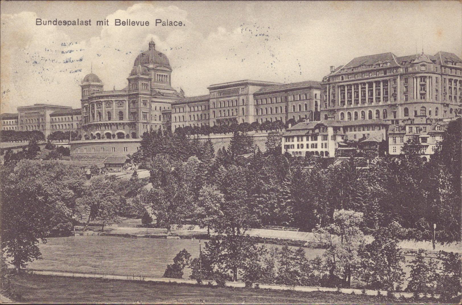 Zustandsbeschreibung der Ansichtskarte "Bundespalast mit Bellevue Palace, Bern"