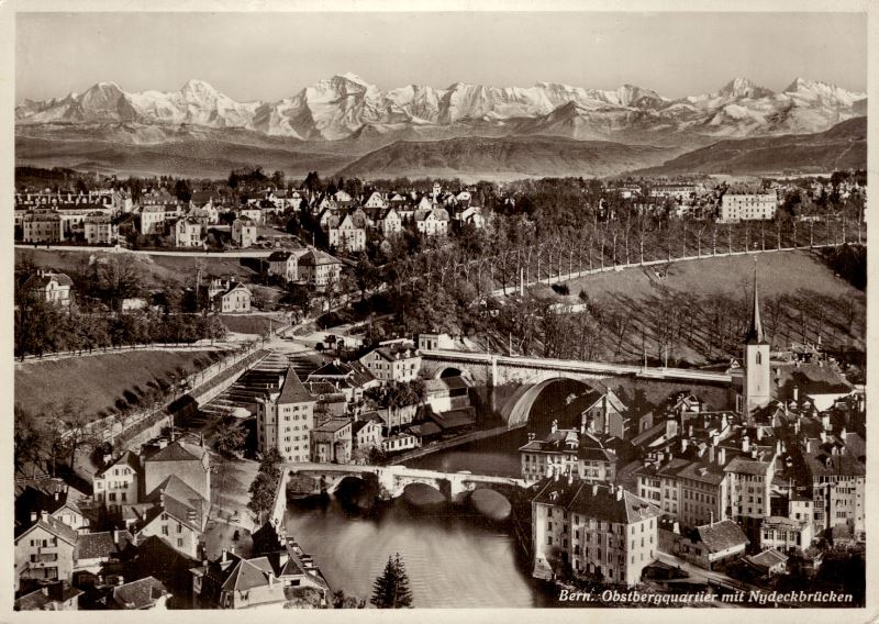 Zustandsbeschreibung der Ansichtskarte "Bern - Obstbergquartier mit Nydeckbrücken"
