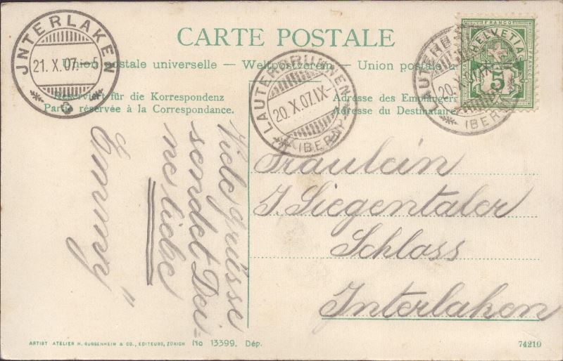 Zustandsbeschreibung der Ansichtskarte "Lauterbrunnen, der Staubbach"