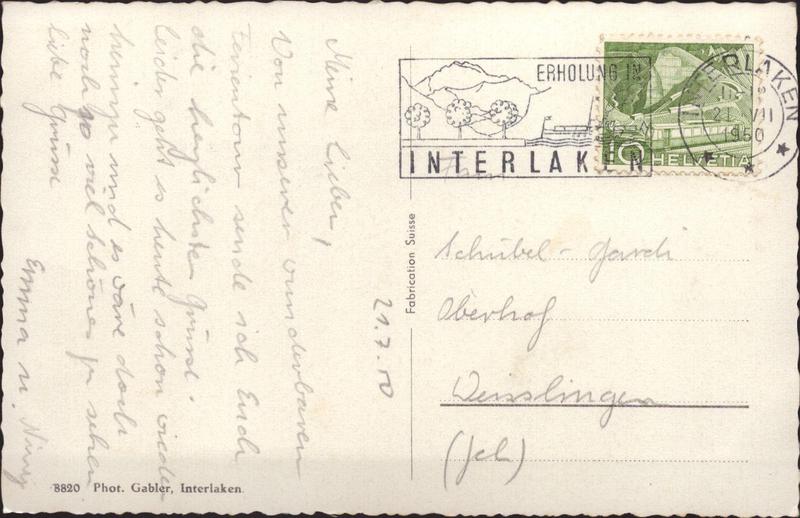Zustandsbeschreibung der Ansichtskarte "Interlaken und die Jungfrau"