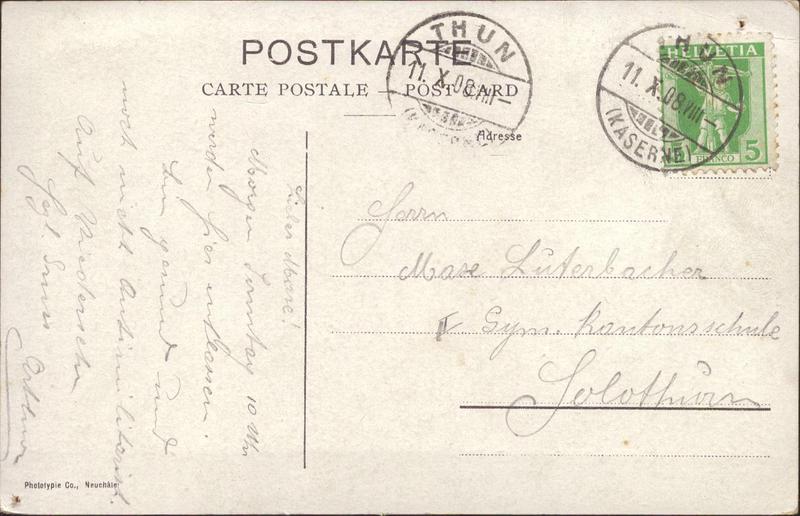 Zustandsbeschreibung der Ansichtskarte "Thun und die Alpen"