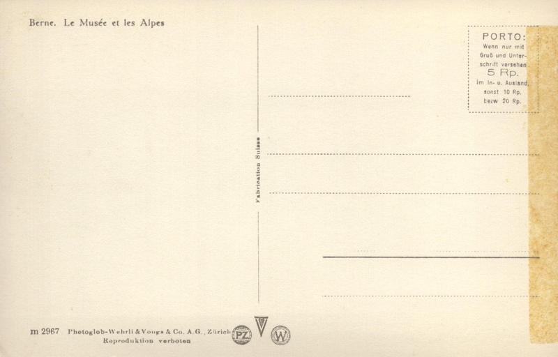 Zustandsbeschreibung der Ansichtskarte "Bern - Museum und Alpen"