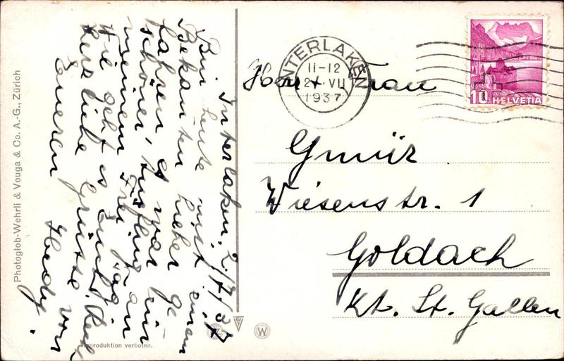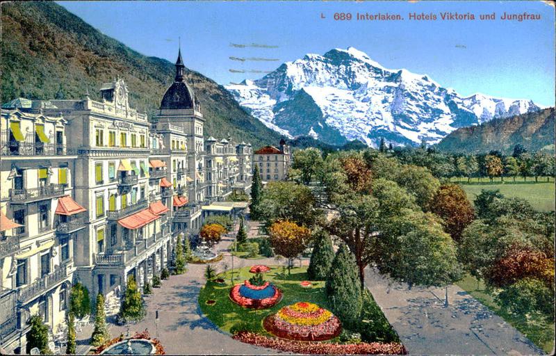 Zustandsbeschreibung der Ansichtskarte "Interlaken, Hotels Giktoria und Jungfrau"