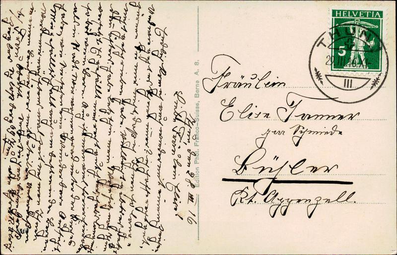 Zustandsbeschreibung der Ansichtskarte "Thund und die Alpen"
