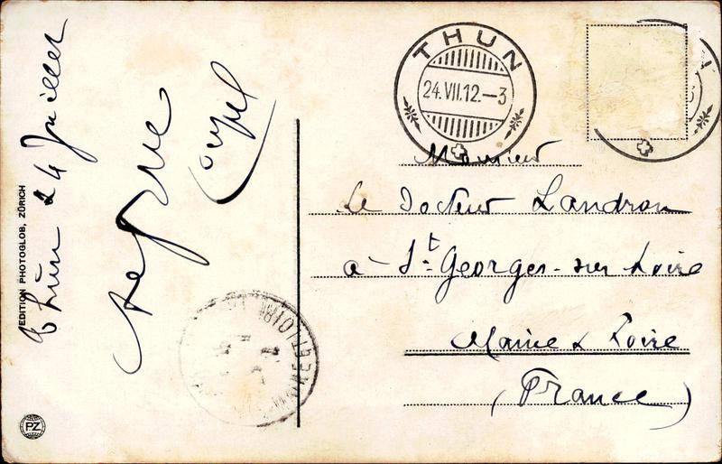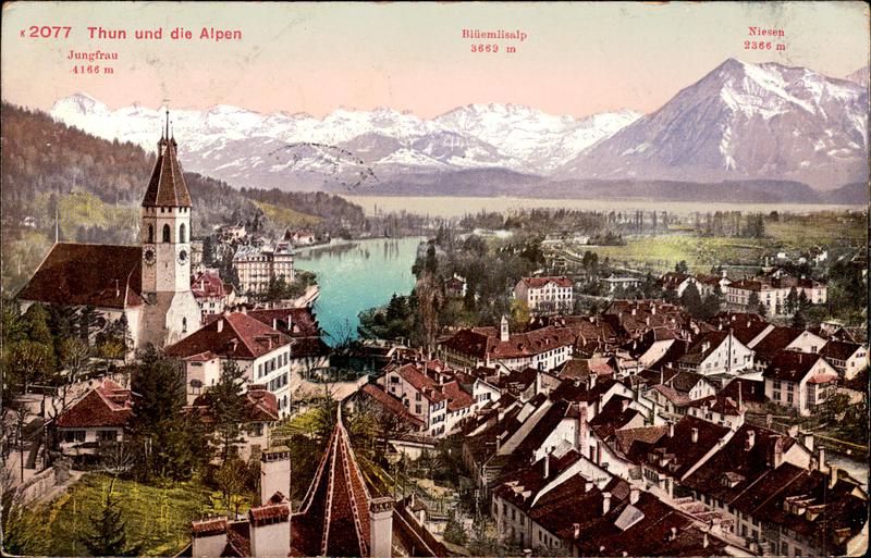 Zustandsbeschreibung der Ansichtskarte "Thun und die Alpen"