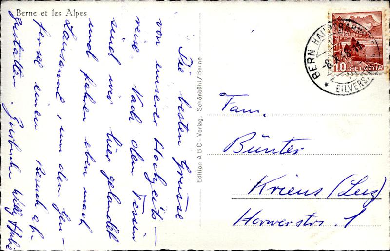 Zustandsbeschreibung der Ansichtskarte "Bern und die Alpen"