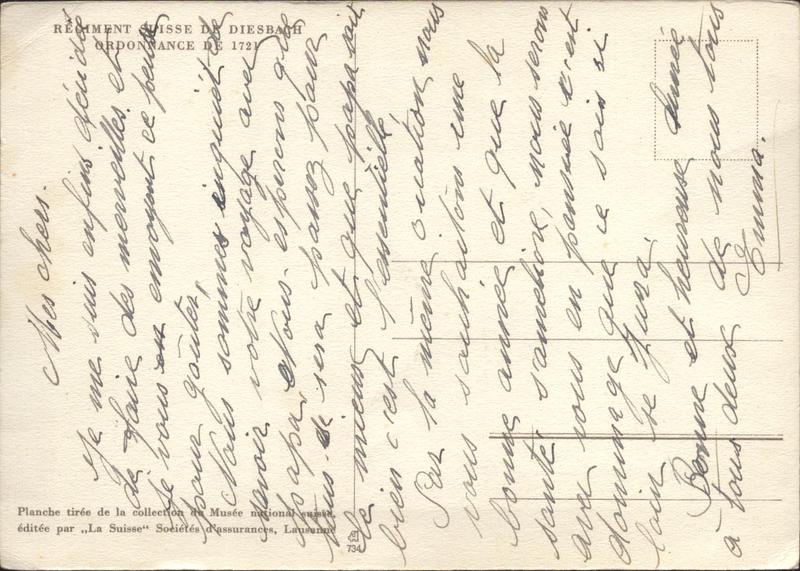 Zustandsbeschreibung der Ansichtskarte "Regiment Suisse de Diesbach"