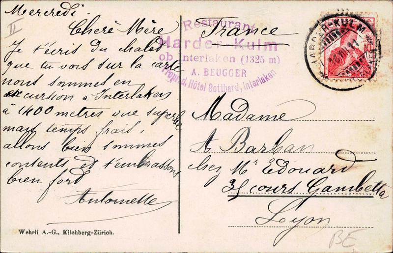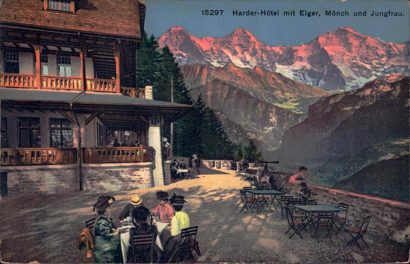 Zustandsbeschreibung der Ansichtskarte "Harder-Hotel mit Eiger, Mönch und Jungfrau"