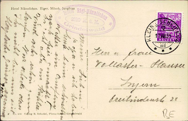 Zustandsbeschreibung der Ansichtskarte "Hotel Männlichen, Eiger, Mönch und Jungfrau"