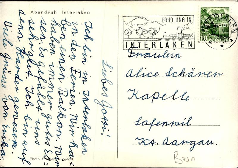 Zustandsbeschreibung der Ansichtskarte "Interlaken, Abendruh"