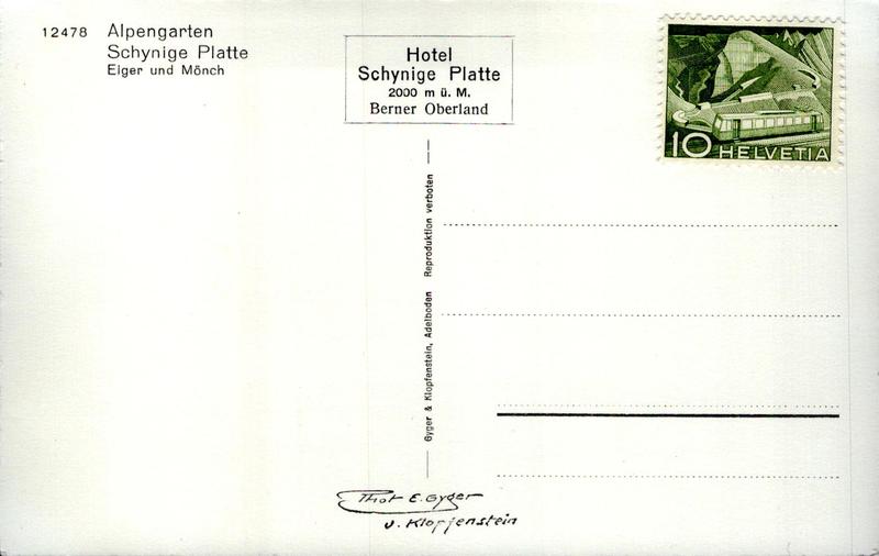 Zustandsbeschreibung der Ansichtskarte "Alpengarten Schynige Platte, Eiger und Mönch"
