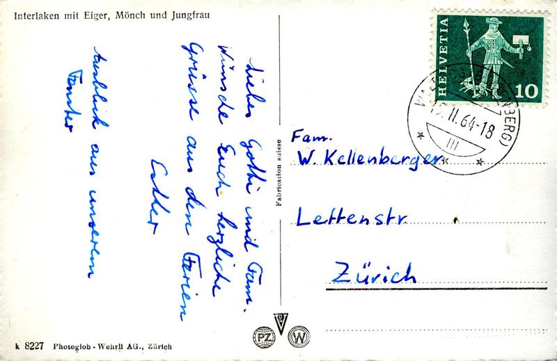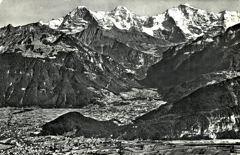 Zustandsbeschreibung der Ansichtskarte "Interlaken mit Eiger, Mönch und Jungfrau"