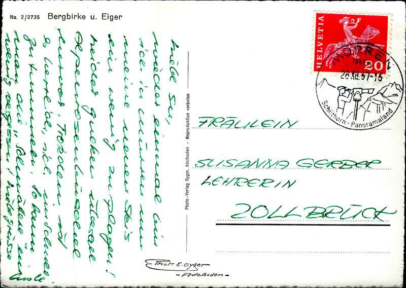 Zustandsbeschreibung der Ansichtskarte "Bergbirke und Eiger"
