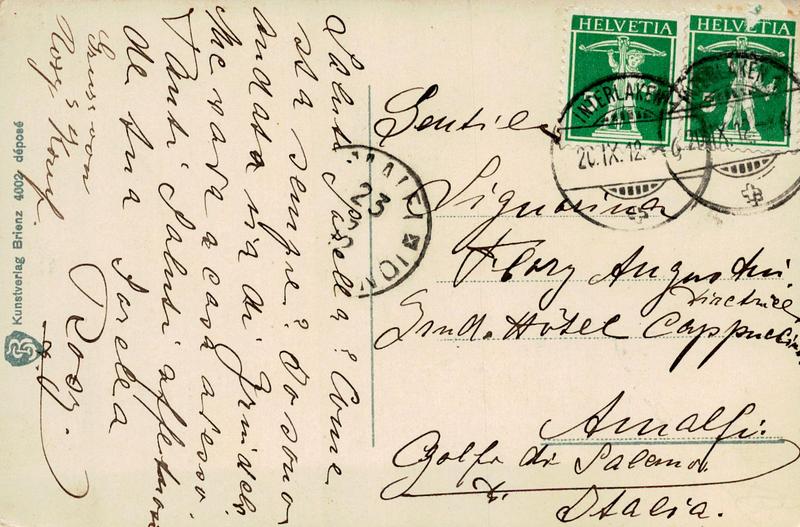 Zustandsbeschreibung der Ansichtskarte "Interlaken, Blumenuhr im Kurgarten"