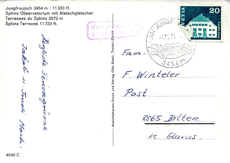 Zustandsbeschreibung der Ansichtskarte "Jungfraujoch, Sphinx Observatorium mit Aletschgletscher"