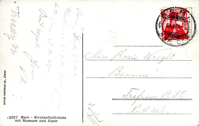 Zustandsbeschreibung der Ansichtskarte "Kirchenfeldbrücke, Museum und Alpen"