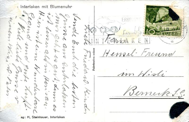 Zustandsbeschreibung der Ansichtskarte "Interlaken mit Blumenuhr"