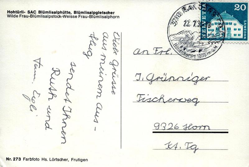 Zustandsbeschreibung der Ansichtskarte "hohtürli- Blümlisalpgletscher"
