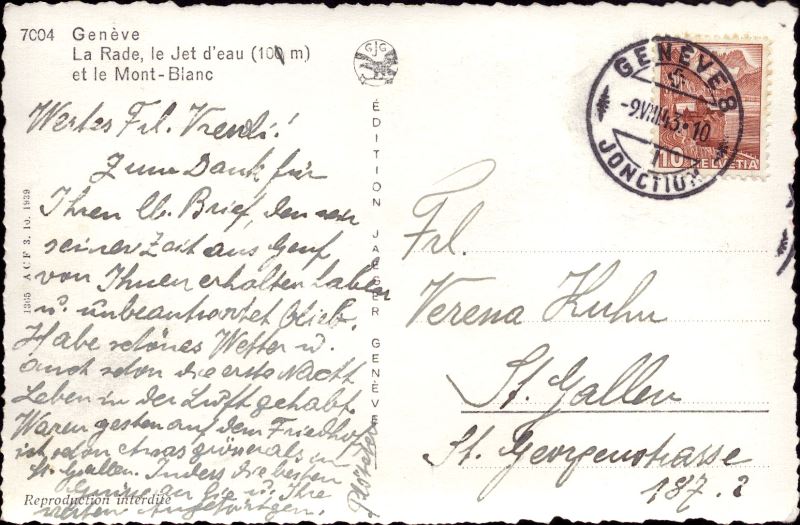 Zustandsbeschreibung der Ansichtskarte "Genéve, la Rade, le Jet d'eau et le Mont-Blanc"