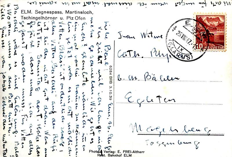 Zustandsbeschreibung der Ansichtskarte "Segnespass, Martinsloch, Tschingelhörner und Piz Ofen, Elm"