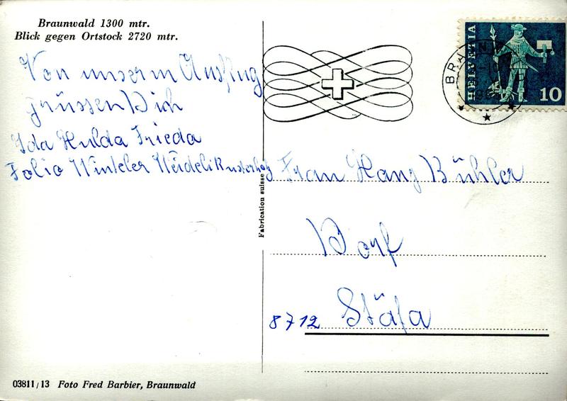 Zustandsbeschreibung der Ansichtskarte "Braunwald, Blick gegen Ortstock"